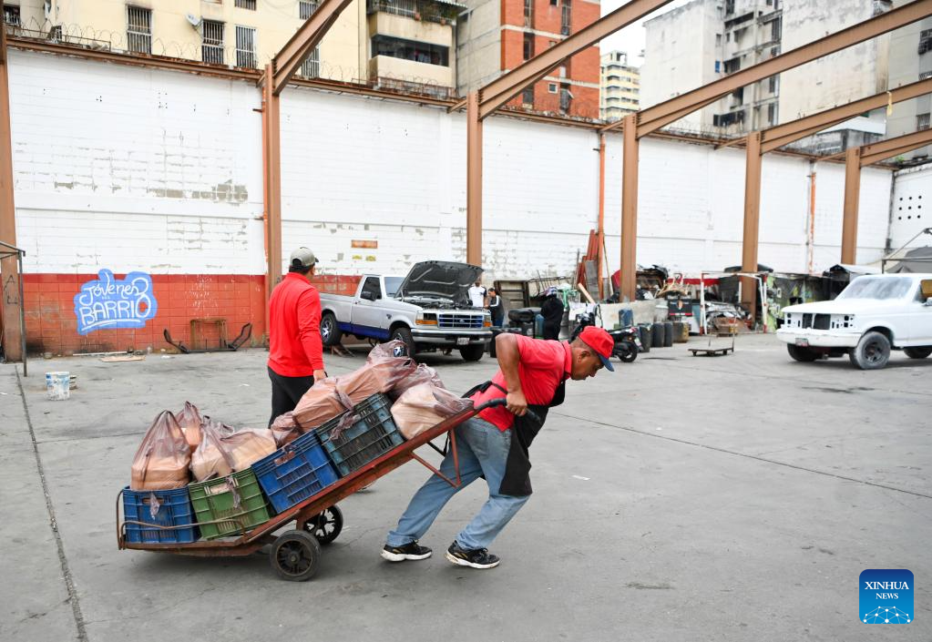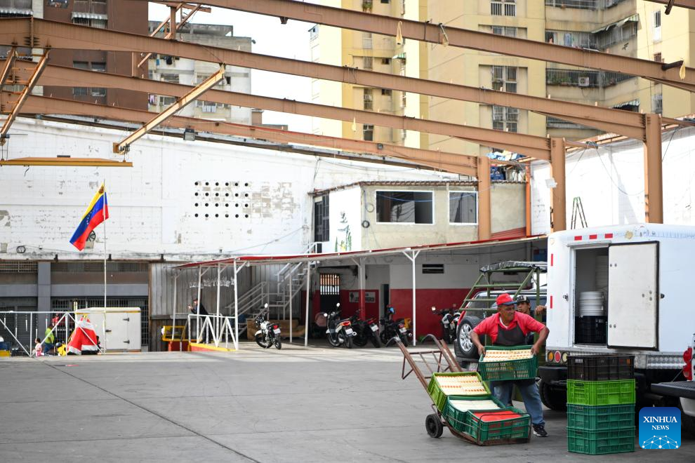 CARACAS, 13 enero, 2026 (Xinhua) -- Un hombre transporta queso en un mercado de quesos, en Caracas, Venezuela, el 13 de enero de 2026. (Xinhua/Ding Hongfa)