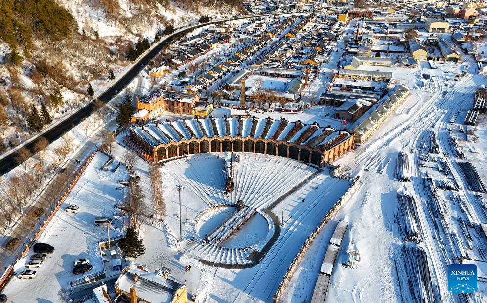 HAILIN, 15 enero, 2026 (Xinhua) -- Turistas toman fotografías en el museo del Ferrocarril Oriental Chino, en el poblado de Hengdaohezi de la ciudad de Hailin, en la provincia de Heilongjiang, en el noreste de China, el 15 de enero de 2025. Conocido como "un poblado tirado por trenes", Hengdaohezi se estableció originalmente a finales del siglo XIX cuando los rusos construyeron allí talleres de mantenimiento de trenes y otras instalaciones tras la construcción del Ferrocarril Oriental Chino. Gracias a sus edificios históricos bien conservados, este exótico poblado se ha convertido en un popular destino turístico. (Xinhua/Yang Zhe)