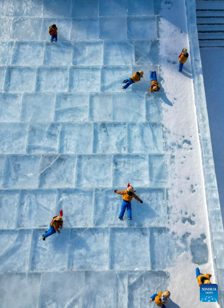 CHANGCHUN, 15 enero, 2026 (Xinhua) -- Imagen tomada con un dron el 14 de enero de 2026 de niños jugando en un parque temático de hielo y nieve, en Changchun, en la provincia de Jilin, en el noreste de China. (Xinhua/Yan Linyun)