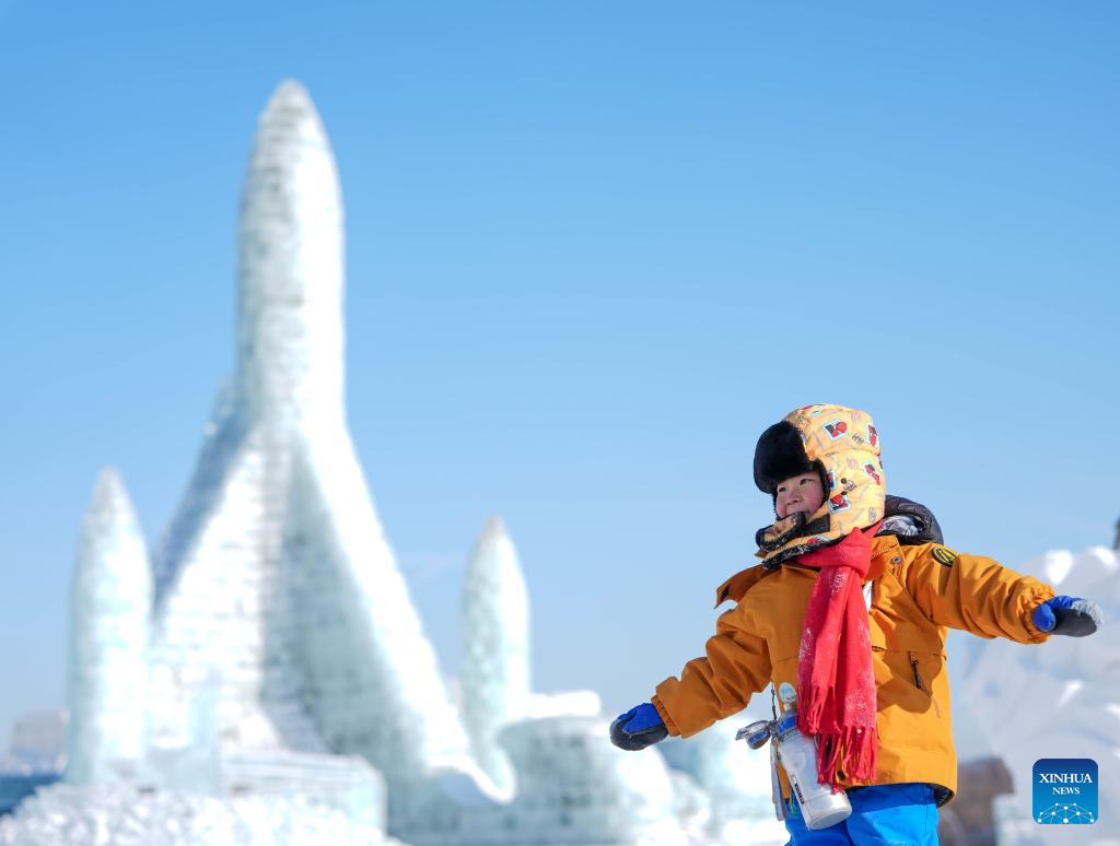 CHANGCHUN, 15 enero, 2026 (Xinhua) -- Imagen del 14 de enero de 2026 de un niño jugando en un parque temático de hielo y nieve, en Changchun, en la provincia de Jilin, en el noreste de China. (Xinhua/Yan Linyun)