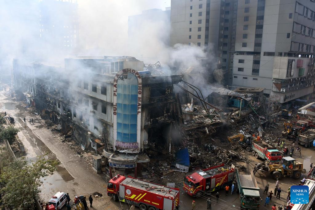 ISLAMABAD, 19 ene (Xinhua) -- El número de muertos por un incendio ocurrido en un centro comercial en la ciudad portuaria de Karachi, en el sur de Pakistán, ascendió a 14 hoy lunes por la mañana, después de que los equipos de rescate recuperaran más cadáveres durante una operación de búsqueda, según informaron las autoridades.