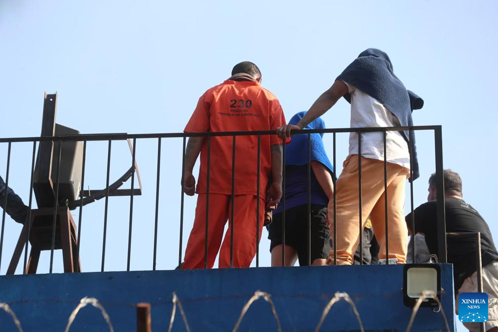 FRAIJANES, 18 enero, 2026 (Xinhua) -- Imagen del 17 de enero de 2026 de una persona privada de la libertad vigilando durante un motín en el Centro de Detención para Hombres Fraijanes II, en el municipio de Fraijanes, Guatemala. En tres cárceles de Guatemala se registraron motines el sábado y al menos 46 personas fueron tomadas como rehenes, dijo el ministro de Gobernación, Marco Antonio Villeda. (Xinhua/Str)