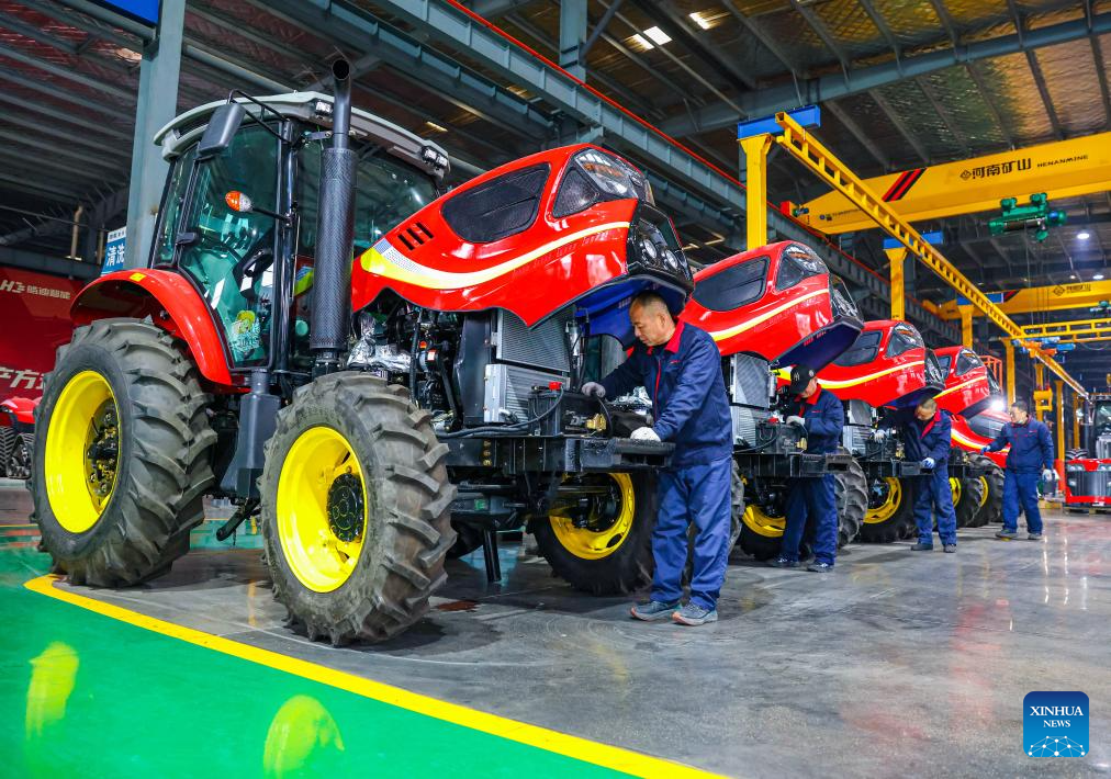 BEIJING, 19 enero, 2026 (Xinhua) -- Trabajadores revisan tractores listos para su venta en el taller de una compañía en la zona de desarrollo de alta tecnología industrial, en la provincia de Jiangsu, en el este de China, el 19 de enero de 2026. El producto interno bruto (PIB) de China creció un 5 por ciento interanual en 2025, cumpliendo con el objetivo anual de alrededor del 5 por ciento, según datos oficiales publicados el lunes. El PIB de China alcanzó un récord de 140,1879 billones de yuanes (unos 20,01 billones de dólares) el año pasado, resaltó el Buró Nacional de Estadísticas. (Xinhua/Ren Fei)