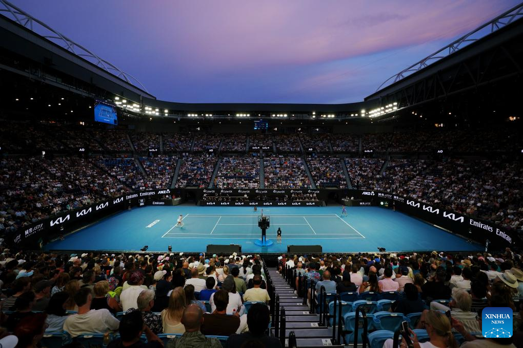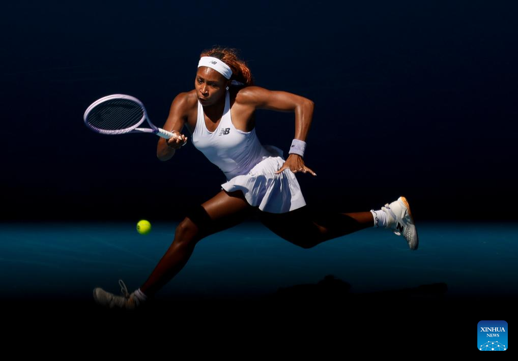 MELBOURNE, 19 enero, 2026 (Xinhua) -- Coco Gauff, de Estados Unidos, devuelve la pelota durante el partido de primera ronda de individuales femeninos, ante Kamilla Rakhimova, de Uzbekistán, en el torneo de tenis Abierto de Australia, en Melbourne, Australia, el 19 de enero de 2026. (Xinhua/Ma Ping)