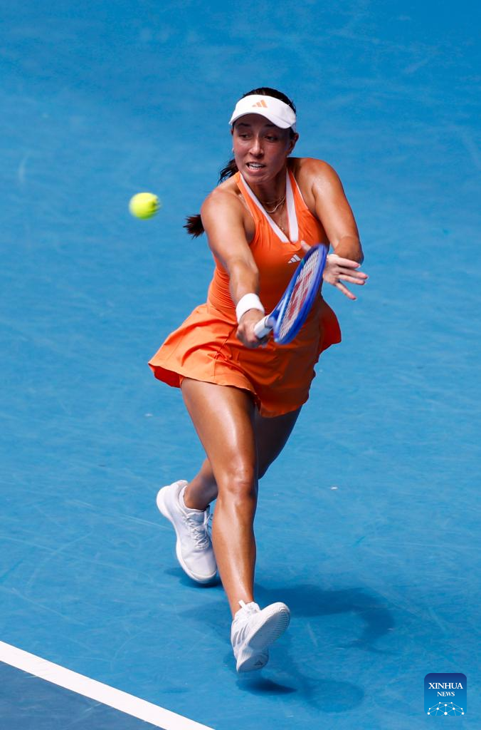 MELBOURNE, 19 enero, 2026 (Xinhua) -- Jessica Pegula, de Estados Unidos, devuelve la pelota durante el partido de primera ronda de individuales femeninos, ante Anastasia Zakharova, de Rusia, en el torneo de tenis Abierto de Australia, en Melbourne, Australia, el 19 de enero de 2026. (Xinhua/Ma Ping)
