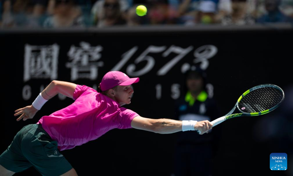 MELBOURNE, 19 enero, 2026 (Xinhua) -- Matteo Arnaldi, de Italia, devuelve la pelota durante el partido de primera ronda de individuales masculinos, ante Andrey Rublev, de Rusia, en el torneo de tenis Abierto de Australia, en Melbourne, Australia, el 19 de enero de 2026. (Xinhua/Hu Jingchen)