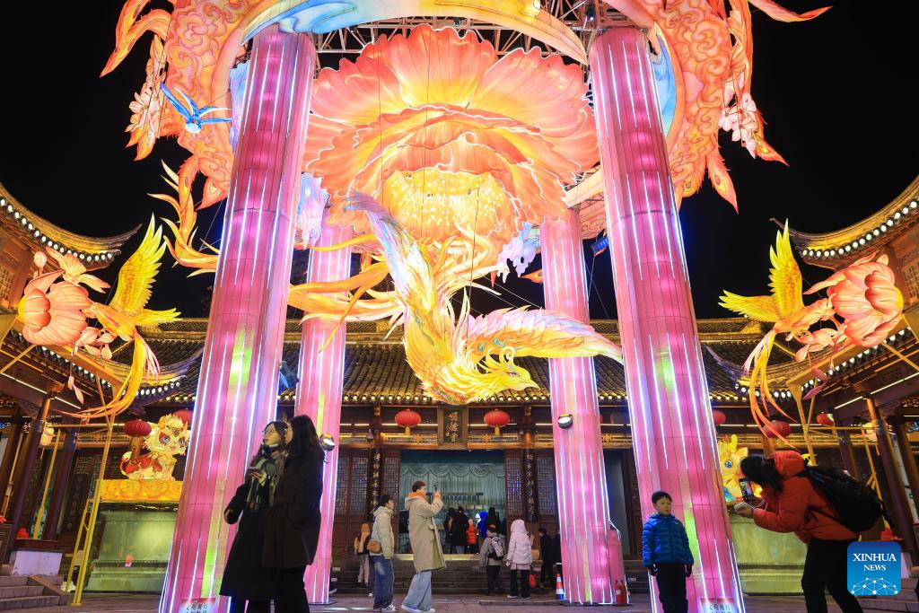 NANJING, 21 enero, 2026 (Xinhua) -- Turistas observan las decoraciones luminosas exhibidas en el área escénica del Templo Confucio durante el 40° Festival de Linternas de Qinhuai, en Nanjing, en la provincia de Jiangsu, en el este de China, el 21 de enero de 2026. La ceremonia de encendido del festival se celebró el miércoles en el Parque Bailuzhou. El festival se puede visitar en varias áreas de exhibición cerca del río Qinhuai en la ciudad de Nanjing. (Xinhua/Yang Suping)