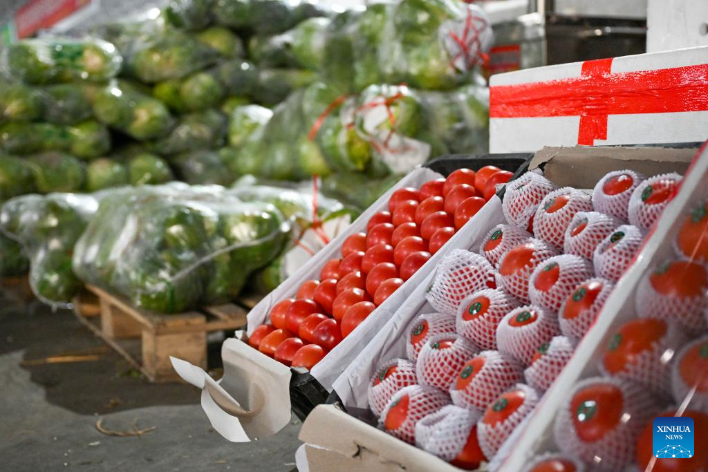 URUMQI, 21 enero, 2026 (Xinhua) -- Imagen del 19 de enero de 2026 de verduras frescas en el mercado mayorista de productos agrícolas de Jiuding, en Urumqi, en la región autónoma uygur de Xinjiang, en el noroeste de China. Una ola de frío masiva azotó recientemente la región autónoma uygur de Xinjiang, en el noroeste de China, provocando fuertes descensos de temperatura. Las autoridades de todos los sectores de la región han trabajado en coordinación para garantizar un amplio suministro de verduras y frutas. (Xinhua/Ding Lei)