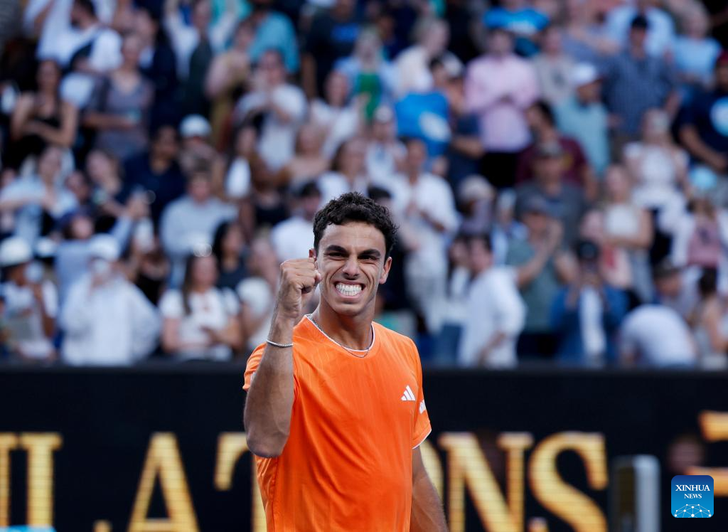 MELBOURNE, 23 enero, 2026 (Xinhua) -- Francisco Cerúndolo festeja después de ganar el partido de tercera ronda de individuales masculinos entre Andrey Rublev, de Rusia, y Francisco Cerúndolo, de Argentina, en el torneo de tenis Abierto de Australia, en Melbourne, Australia, el 23 de enero de 2026. (Xinhua/Ma Ping)