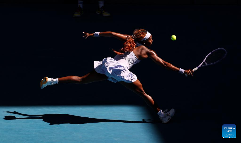 MELBOURNE, 23 enero, 2026 (Xinhua) -- Coco Gauff, de Estados Unidos, devuelve la pelota durante el partido de tercera ronda de individuales femeninos ante Hailey Baptiste, de Estados Unidos, en el torneo de tenis Abierto de Australia, en Melbourne, Australia, el 23 de enero de 2026. (Xinhua/Ma Ping)