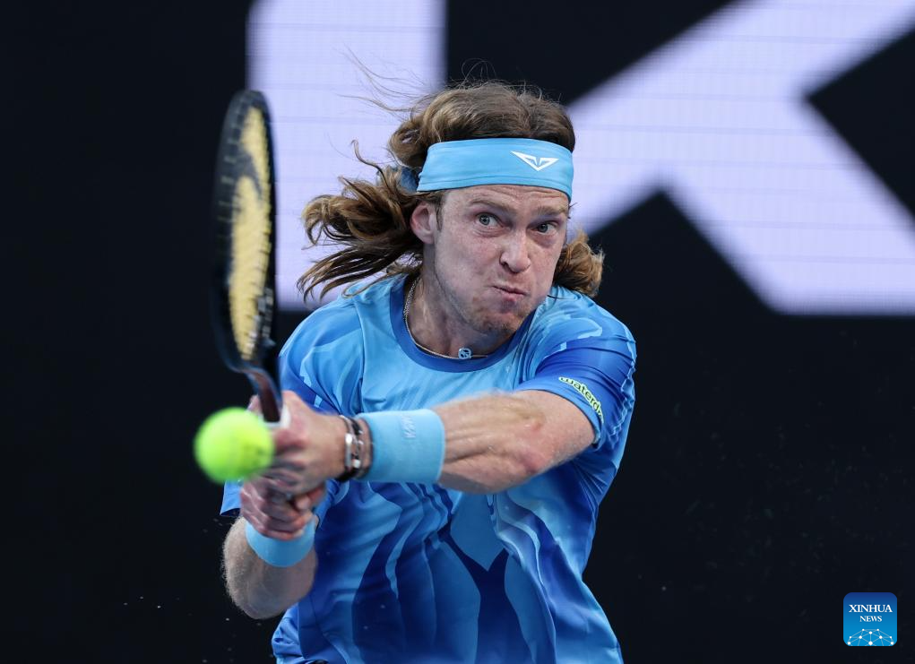 MELBOURNE, 23 enero, 2026 (Xinhua) -- Andrey Rublev devuelve la pelota durante el partido de tercera ronda de individuales masculinos entre Andrey Rublev, de Rusia, y Francisco Cerúndolo, de Argentina, en el torneo de tenis Abierto de Australia, en Melbourne, Australia, el 23 de enero de 2026. (Xinhua/Ma Ping)