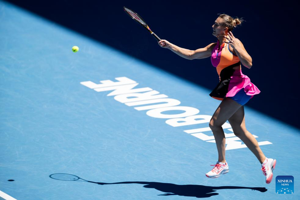 MELBOURNE, 23 enero, 2026 (Xinhua) -- Aryna Sabalenka, de Bielorrusia, devuelve la pelota durante el partido de tercera ronda de individuales femeninos ante Anastasia Potapova, de Austria, en el torneo de tenis Abierto de Australia, en Melbourne, Australia, el 23 de enero de 2026. (Xinhua/Hu Jingchen)