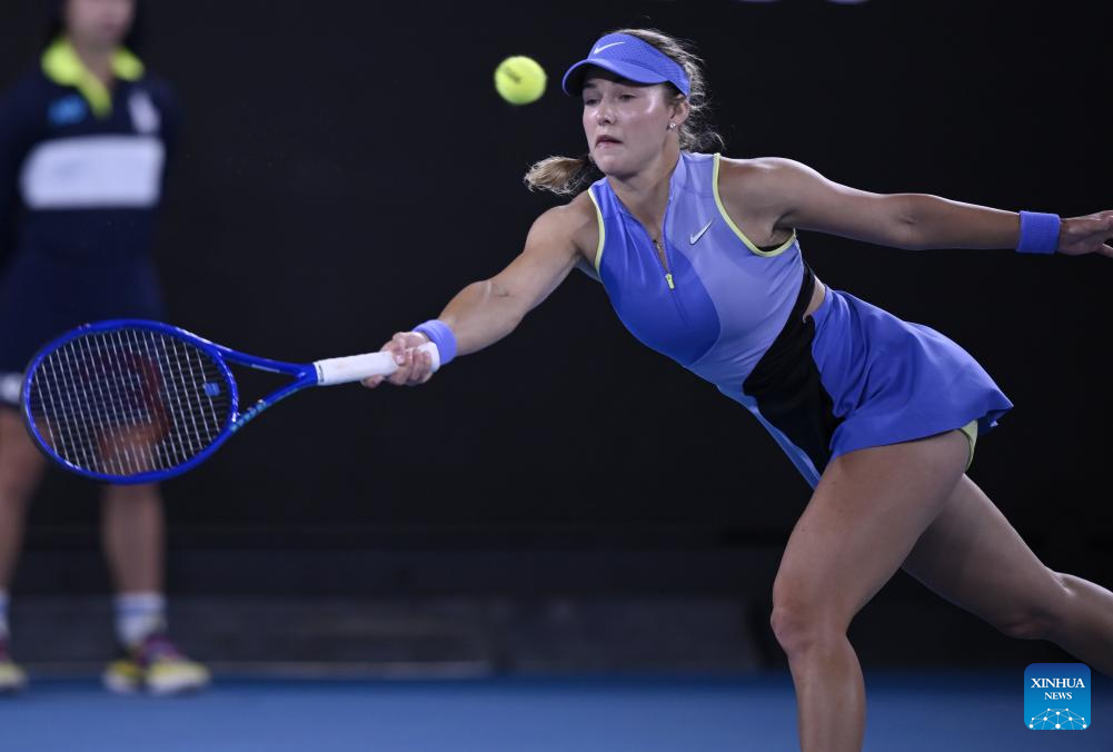 MELBOURNE, 24 enero, 2026 (Xinhua) -- Linda Noskova reacciona durante el partido de tercera ronda de individuales femeninos entre Wang Xinyu, de China, y Linda Noskova, de República Checa, en el torneo de tenis Abierto de Australia, en Melbourne, Australia, el 24 de enero de 2026. (Xinhua/Ma Ping)