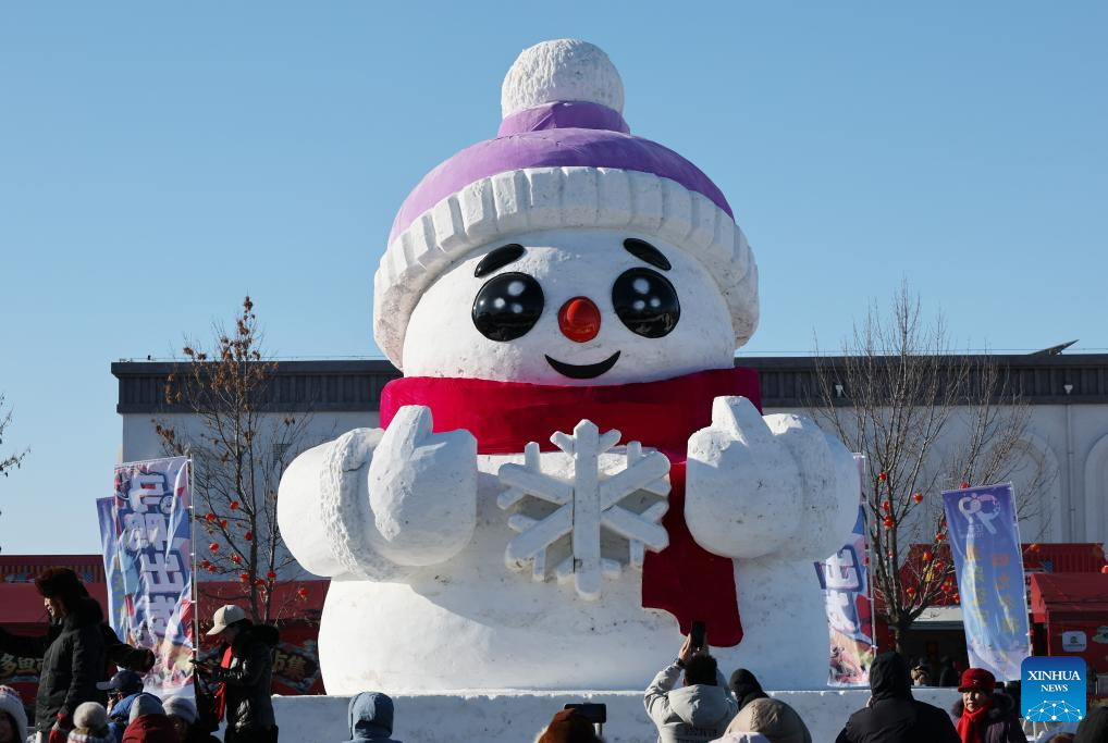 SHENYANG, 24 enero, 2026 (Xinhua) -- Turistas toman fotografías de un muñeco de nieve gigante durante un evento de pesca de invierno en el lago Wolong, en el distrito de Kangping de Shenyang, en la provincia de Liaoning, en el noreste de China, el 24 de enero de 2026. Un evento de pesca de invierno comenzó aquí el sábado, con presentaciones, gastronomía a base de pescado e instalaciones recreativas de hielo y nieve. (Xinhua/Li Gang)
