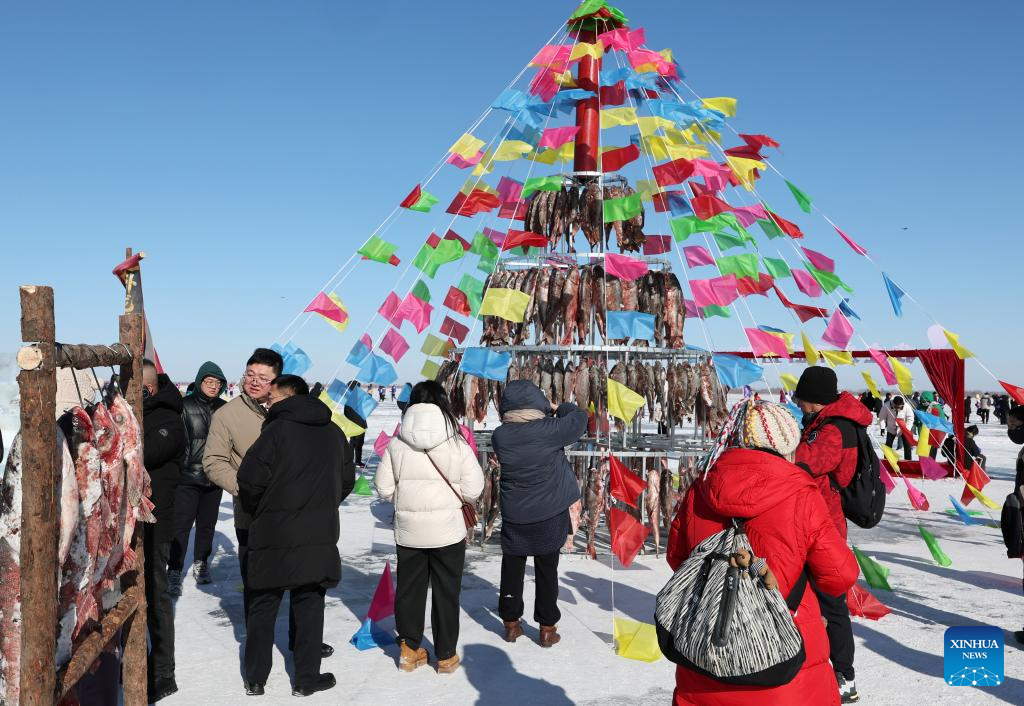 SHENYANG, 24 enero, 2026 (Xinhua) -- Turistas visitan un evento de pesca de invierno en el lago Wolong, en el distrito de Kangping de Shenyang, en la provincia de Liaoning, en el noreste de China, el 24 de enero de 2026. Un evento de pesca de invierno comenzó aquí el sábado, con presentaciones, gastronomía a base de pescado e instalaciones recreativas de hielo y nieve. (Xinhua/Li Gang)