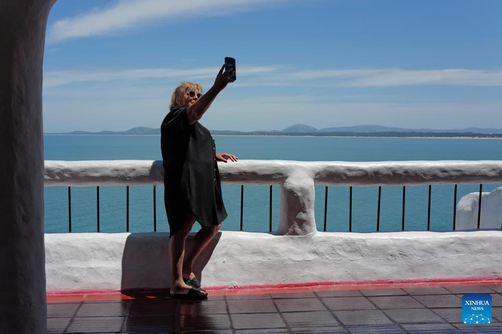 PUNTA DEL ESTE, 27 enero, 2026 (Xinhua) -- Imagen del 24 de enero de 2026 de una mujer tomando una fotografía en Casapueblo, en Punta del Este, en el departamento de Maldonado, Uruguay. En la emblemática península de Punta Ballena, frente al Río de la Plata, se alza Casapueblo. Más que una casa, es una "escultura habitable", el testamento en cemento y blanco del artista uruguayo Carlos Páez Vilaró. Desde su construcción en 1958, esta obra resumen la vocación universal de su creador. Hoy, guarda entre sus muros curvos un vínculo singular con China, forjado hace dos décadas. (Xinhua/Wang Zhongyi)