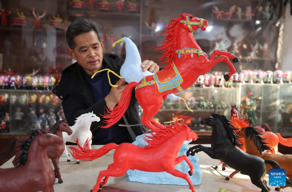 JI'NAN, 27 enero, 2026 (Xinhua) -- Imagen del 16 de enero de 2026 de un artesano fabricando figuritas de masa con temática de caballos, en Linyi, en la provincia de Shandong, en el este de China. Con la llegada del Año del Caballo, una amplia gama de productos culturales con temas ecuestres, desde recuerdos de museos hasta artesanías tradicionales, están ganando popularidad en la provincia de Shandong, en el este de China. (Xinhua/Wang Yanbing)