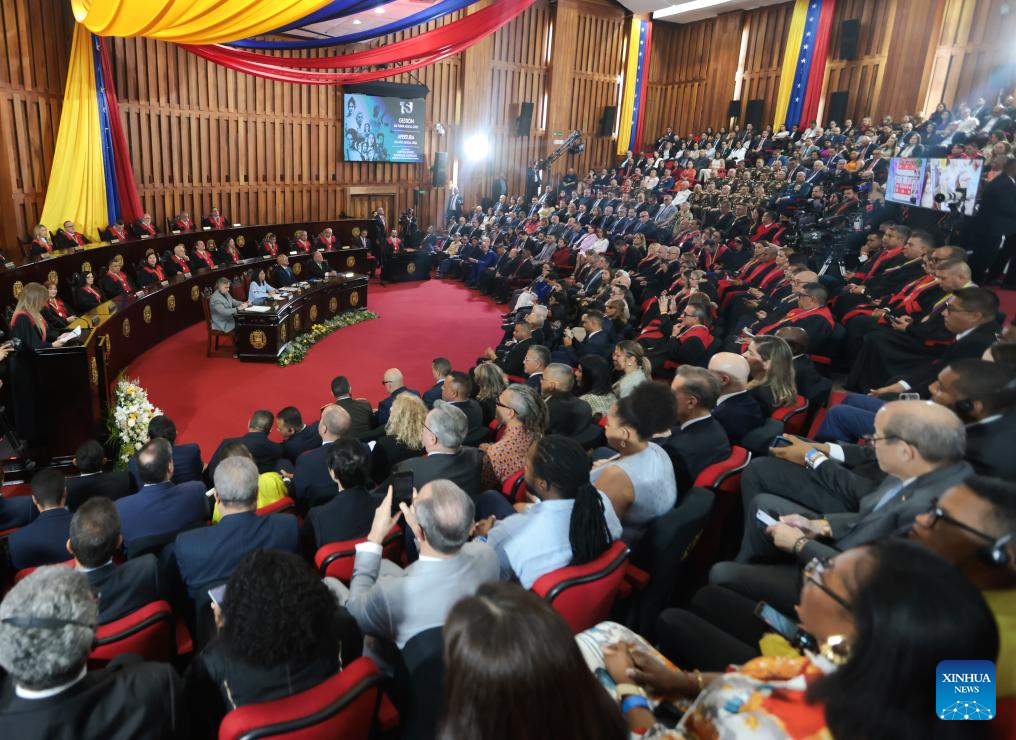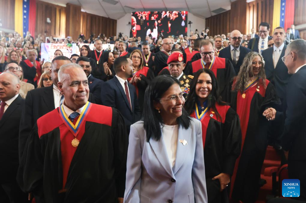Imagen proveída por la Presidencia de Venezuela del 30 de enero de 2026 de la apertura del año judicial 2026 encabezado por la presidenta encargada venezolana, Delcy Rodríguez, en la sede del Tribunal Supremo de Justicia, en Caracas, Venezuela. Rodríguez informó el viernes que ha decidido impulsar una ley de amnistía general "que cubra todo el período de violencia política" desde 1999 hasta la fecha. (Xinhua/Presidencia de Venezuela)