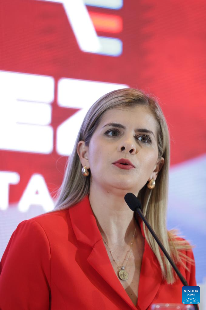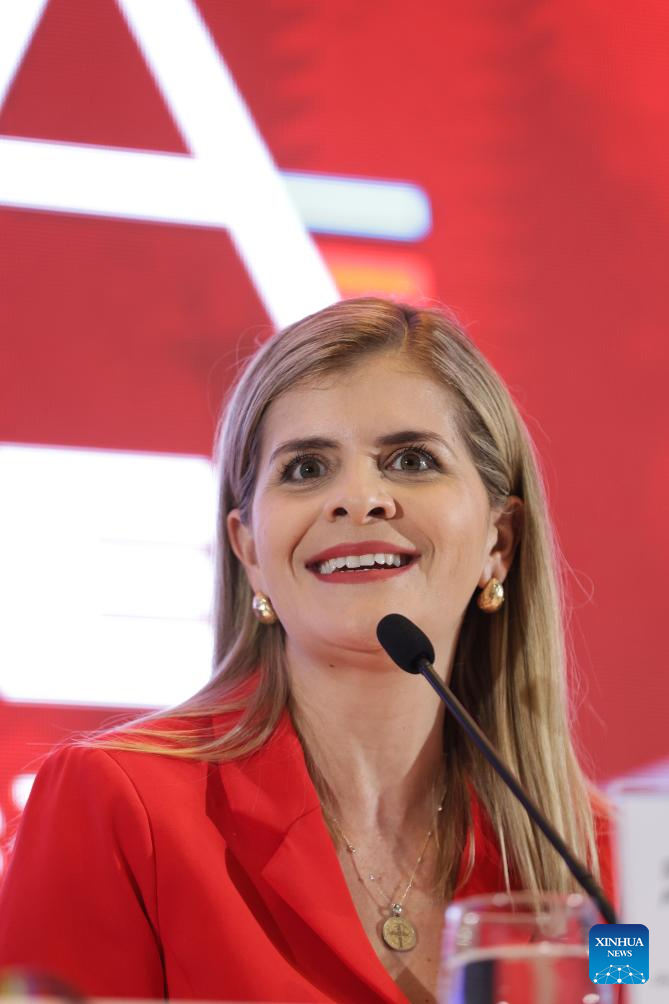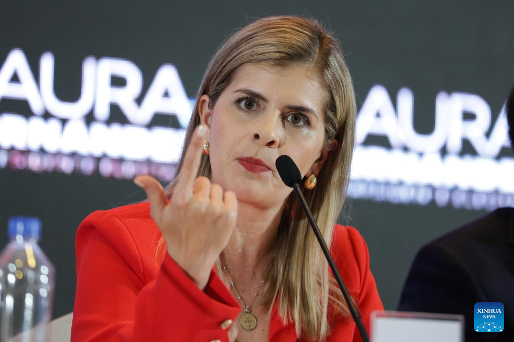 La presidenta electa de Costa Rica, Laura Fernández, habla durante una conferencia de prensa, en San José, Costa Rica, el 2 de febrero de 2026. La candidata oficialista Laura Fernández, del Partido Pueblo Soberano celebró el domingo el resultado de la elección presidencial de Costa Rica tras obtener el 48,51 por ciento de los votos. (Xinhua/Francisco Cañedo)