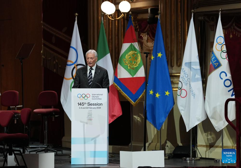 MILAN, 2 febrero, 2026 (Xinhua) -- Giovanni Malago, presidente del Comité Organizador para los Juegos Olímpicos de Invierno 2026, pronuncia un discurso durante la ceremonia de apertura de la Sesión 145 del Comité Olímpico Internacional, en el Teatro La Scala, en Milán, Italia, el 2 de febrero de 2026. (Xinhua/Sun Fei)