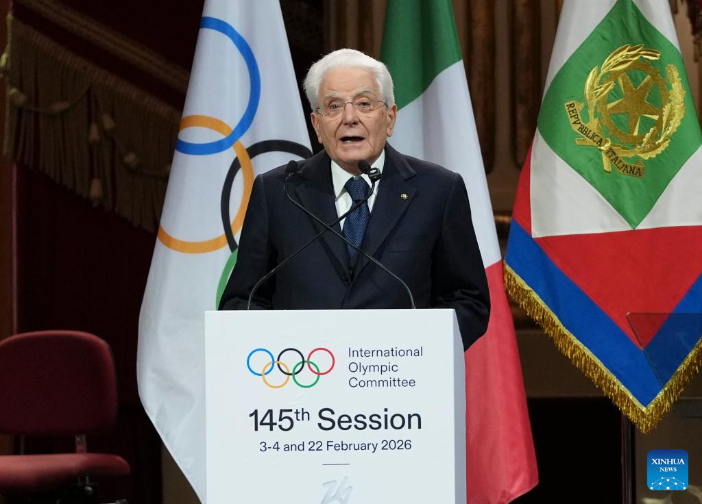 MILAN, 2 febrero, 2026 (Xinhua) -- El presidente italiano, Sergio Mattarella, pronuncia un discurso durante la ceremonia de apertura de la Sesión 145 del Comité Olímpico Internacional, en el Teatro La Scala, en Milán, Italia, el 2 de febrero de 2026. (Xinhua/Sun Fei)