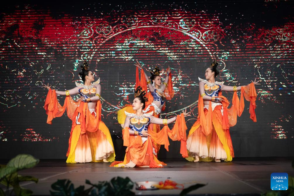 Imagen del 3 de febrero de 2026 de artistas realizando una presentación de danza durante la recepción llevada a cabo en el marco de las celebraciones del Año Nuevo chino o Festival de la Primavera, en la ciudad de Buenos Aires, capital de Argentina. La ciudad de Buenos Aires fue escenario el martes de una velada dedicada a las expresiones artísticas y las tradiciones de China, organizada por la Embajada de China en Argentina con motivo de la próxima llegada del Año Nuevo chino del calendario lunar y el signo del Caballo del horóscopo tradicional chino. (Xinhua/Martín Zabala)