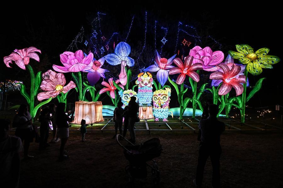 SANTIAGO, 6 feb (Xinhua) -- Los pandas gigantes de la provincia china de Sichuan, el Buda de cuatro caras del monte Emei y el estilo de pintura tradicional verde y azul, Qinglü Shanshui, son algunos de los atractivos de gran tamaño que iluminan los atardeceres de Santiago de Chile, en el marco de la feria de luces chinas, Tianfu Festival, inaugurada este jueves en la previa del Año Nuevo chino.