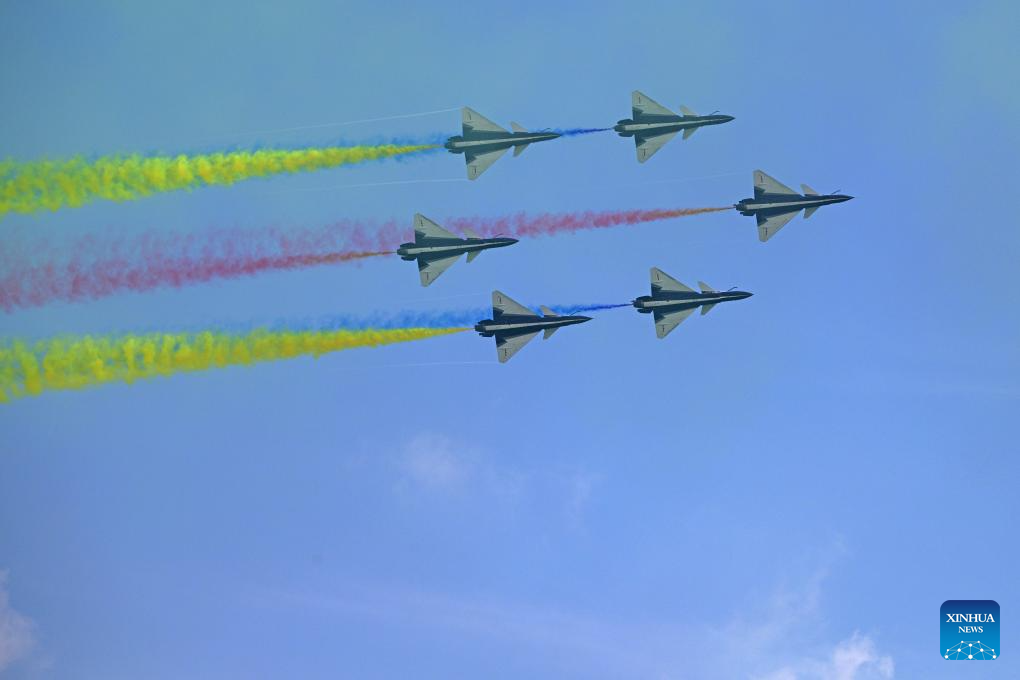 SINGAPUR, 7 febrero, 2026 (Xinhua) -- Aviones del equipo acrobático Bayi de la Fuerza Aérea del Ejército Popular de Liberación (EPL) chino realizan una presentación durante el décimo Salón Aeronáutico de Singapur, en Singapur, el 7 de febrero de 2026. (Xinhua/Then Chih Wey)