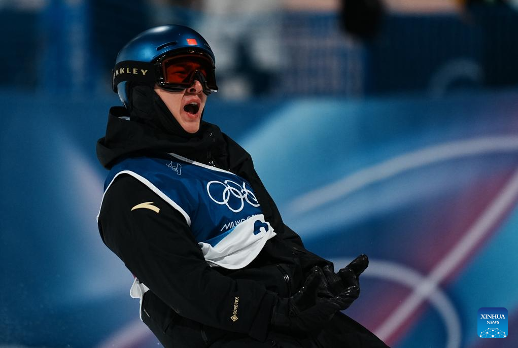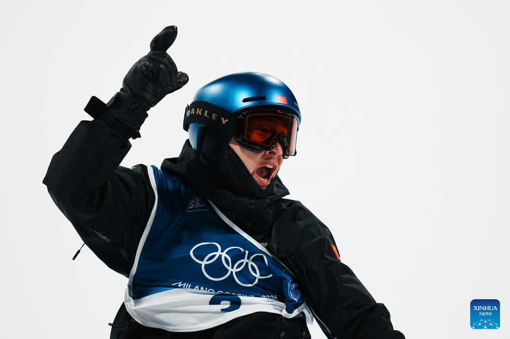 LIVIGNO, 7 febrero, 2026 (Xinhua) -- Su Yiming, de China, festeja durante la final de Big Air masculino de Snowboard en los Juegos Olímpicos de Invierno Milán-Cortina 2026, en Livigno, Italia, el 7 de febrero de 2026. (Xinhua/Hu Chao)
