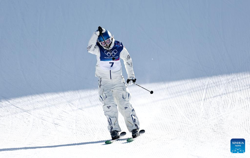 LIVIGNO, 7 febrero, 2026 (Xinhua) -- Gu Ailing, de China, reacciona durante la calificación de esquí acrobático slopestyle femenino de esquí estilo libre de los Juegos Olímpicos de Invierno Milán-Cortina 2026, en Livigno, Italia, el 7 de febrero de 2026. (Xinhua/Wang Peng)