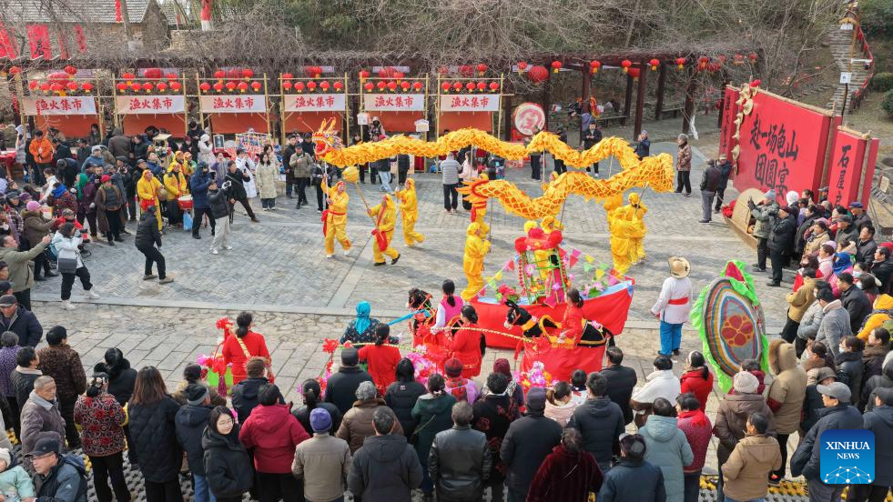 BEIJING, 8 febrero, 2026 (Xinhua) -- Imagen del 7 de febrero de 2026 de artistas presentando un espectáculo para dar la bienvenida a la Fiesta de la Primavera, en el distrito de Pinggu de Beijíng, capital de China. A medida que se acerca la Fiesta de la Primavera, se celebran en todo el país diversas actividades que reflejan tradiciones ancestrales, llenando el ambiente de gran entusiasmo. (Xinhua/Ren Chao)
