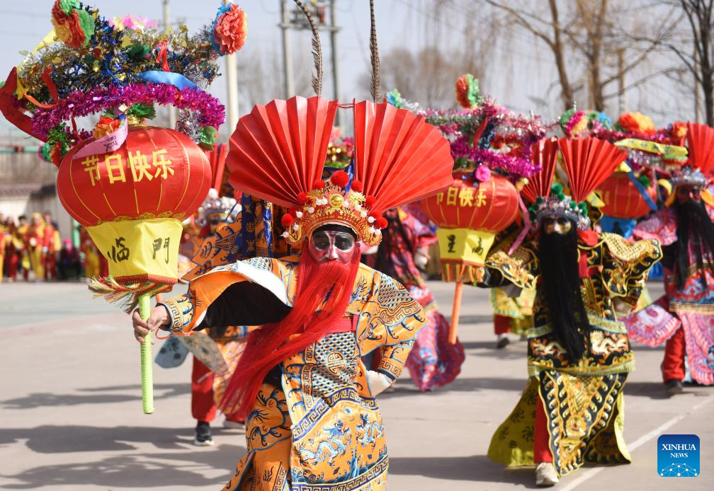 BEIJING, 8 febrero, 2026 (Xinhua) -- Imagen del 6 de febrero de 202 de artistas folclóricos realizan una presentación en una feria, en la prefectura autónoma de hui de Linxia, en la provincia de Gansu, en el noroeste de China. A medida que se acerca la Fiesta de la Primavera, se celebran en todo el país diversas actividades que reflejan tradiciones ancestrales, llenando el ambiente de gran entusiasmo.(Xinhua/ Shi Youdong)