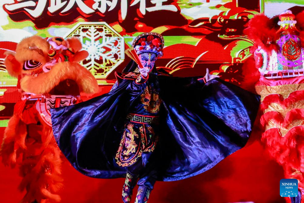 QUITO, 8 febrero, 2026 (Xinhua) -- Imagen del 7 de febrero de 2026 de un artista realizando una presentación durante un Festival Cultural con motivo de la próxima celebración del Año Nuevo chino, en la ciudad de Quito, capital de Ecuador. La tradicional danza china de leones y dragones dio la bienvenida a un Festival Cultural en la ciudad ecuatoriana de Quito, organizado por la Academia de Lengua China Siyuan, con motivo de la próxima celebración del Año Nuevo chino o Fiesta de la Primavera, la festividad tradicional más importante del país asiático. (Xinhua/Ricardo Landeta)