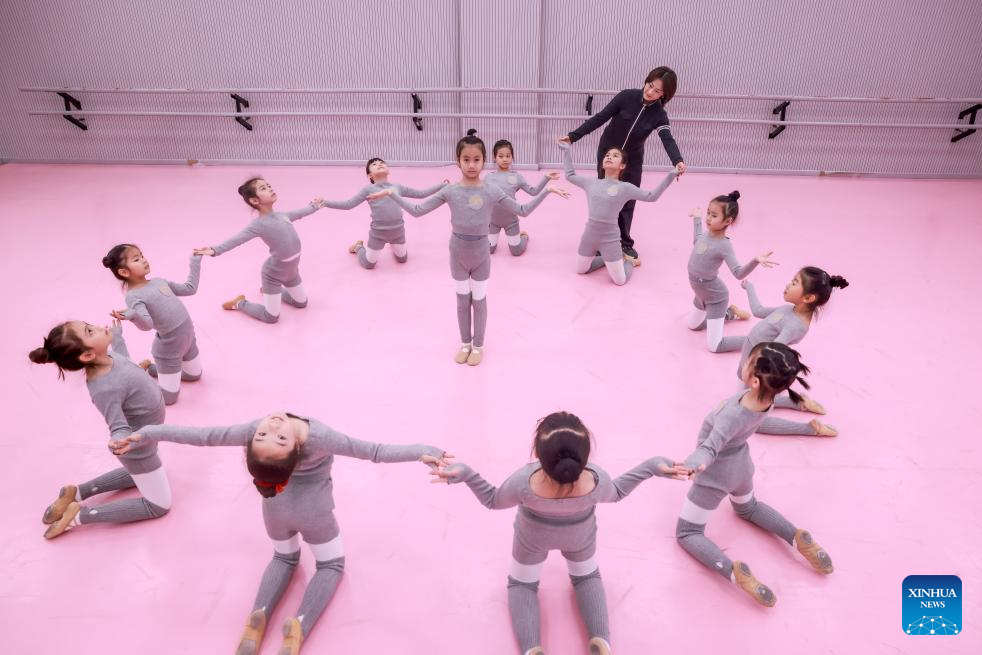 BEIJING, 8 febrero, 2026 (Xinhua) -- Niños ensayan un baile bajo la guía de una instructora en un centro de educación artística, en Wuhan, en la provincia de Hubei, en el centro de China, el 8 de febrero de 2026. Varias actividades extracurriculares están disponibles para los estudiantes a lo largo de China durante las vacaciones de invierno. (Xinhua/Zhao Jun)
