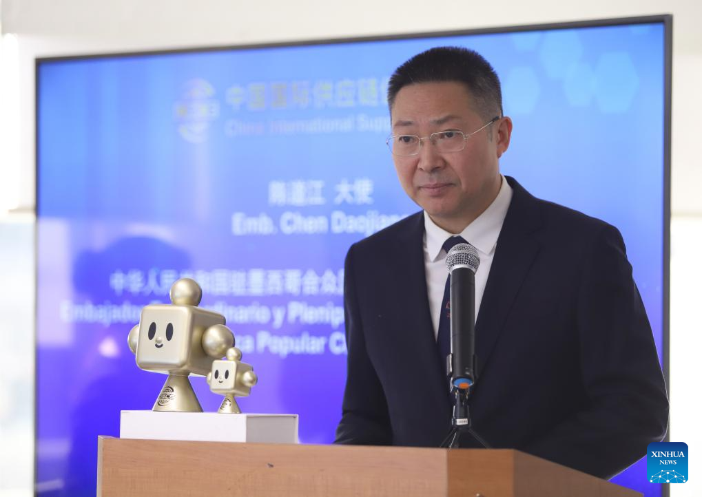 Imagen del 9 de febrero de 2026 del embajador de China en México, Chen Daojiang, hablando durante el evento de presentación de la cuarta Exposición Internacional de la Cadena de Suministro de China (CISCE, siglas en inglés), en la Ciudad de México, capital de México. China y México están comprometidos a profundizar su relación bilateral con el objetivo de que los frutos de la cooperación sigan beneficiando tanto a las industrias como a los pueblos de ambos países, afirmaron expertos el lunes, en el marco de la presentación de la cuarta CISCE. (Xinhua/Daniel Augusto)