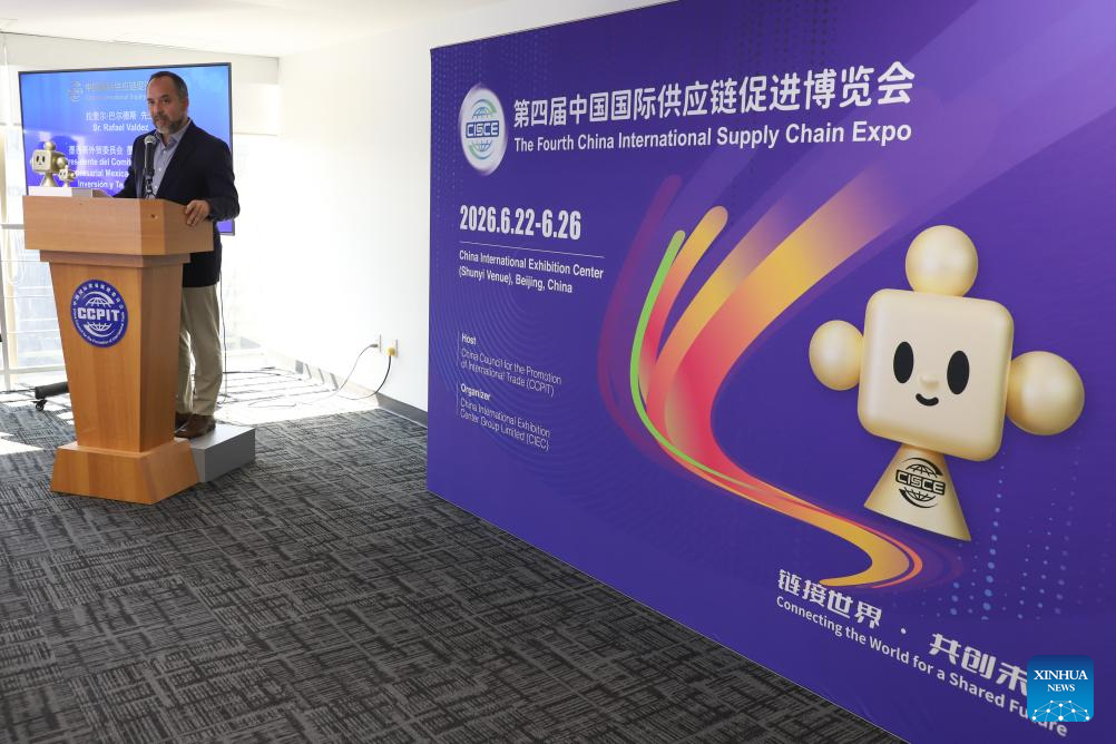 Imagen del 9 de febrero de 2026 del presidente del Comité Empresarial Bilateral México-China del Consejo Empresarial Mexicano de Comercio Exterior, Inversión y Tecnología, Rafael Valdez, hablando durante el evento de presentación de la cuarta Exposición Internacional de la Cadena de Suministro de China (CISCE, siglas en inglés), en la Ciudad de México, capital de México. China y México están comprometidos a profundizar su relación bilateral con el objetivo de que los frutos de la cooperación sigan beneficiando tanto a las industrias como a los pueblos de ambos países, afirmaron expertos el lunes, en el marco de la presentación de la cuarta CISCE. (Xinhua/Daniel Augusto)