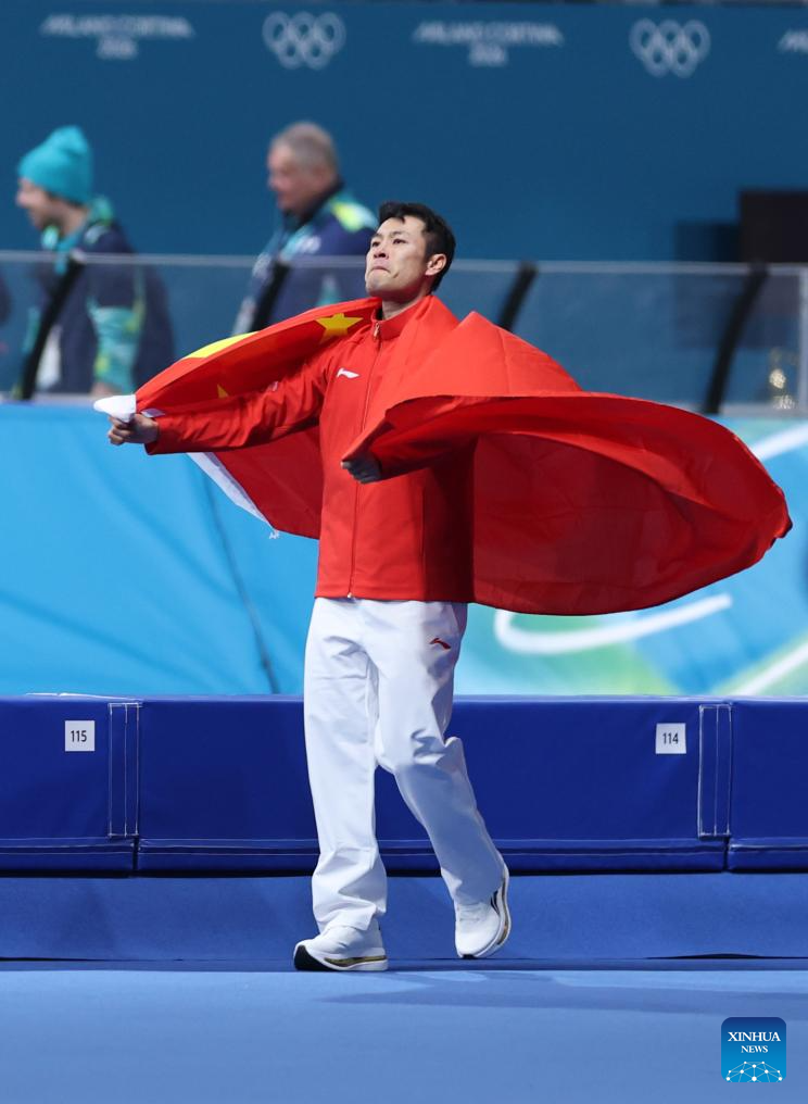 MILAN, 11 febrero, 2026 (Xinhua) -- Ning Zhongyan, de China, festeja al término de los 1.000m masculinos de patinaje de velocidad en los Juegos Olímpicos de Invierno Milán-Cortina 2026, en Milán, Italia, el 11 de febrero de 2026. (Xinhua/Du Xiaoyi)