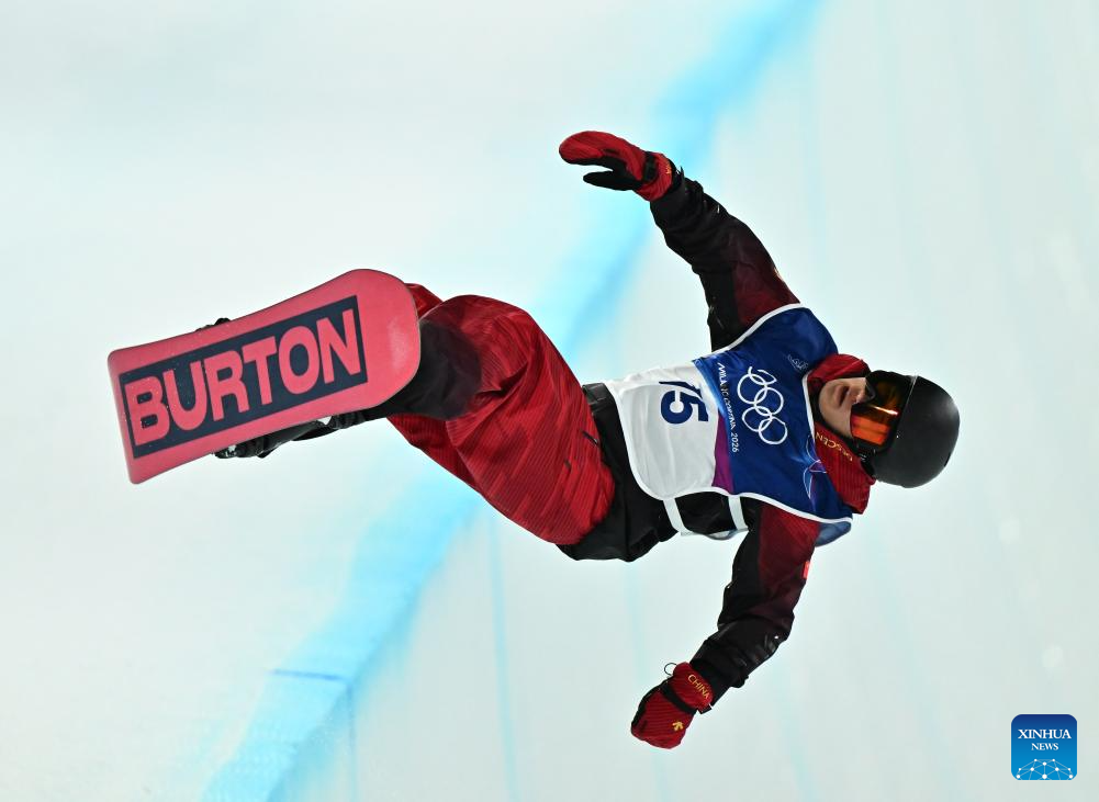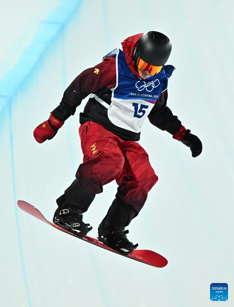 LIVIGNO, 11 febrero, 2026 (Xinhua) -- Wang Ziyang, de China, realiza un entrenamiento previo a la clasificación de halfpipe masculino de snowboard en los Juegos Olímpicos de Invierno Milán-Cortina 2026, en Livigno, Italia, el 11 de febrero de 2026. (Xinhua/Zhang Hongxiang)