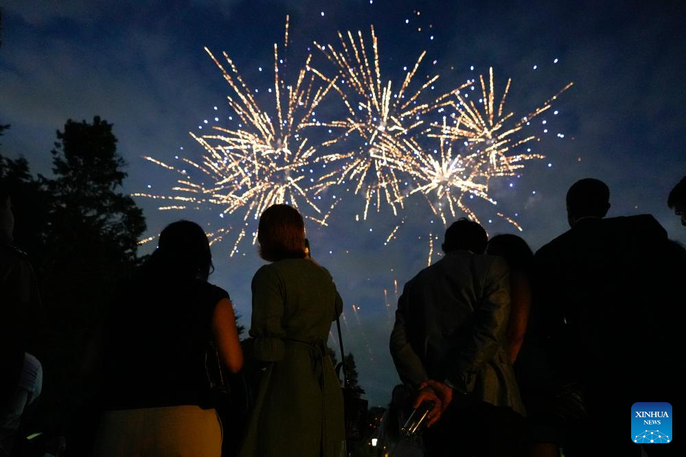Imagen del 12 de febrero de 2026 de personas observando los fuegos artificiales durante la recepción oficial por el Año Nuevo chino, en Montevideo, capital de Uruguay. A pocos días de regresar de una visita de Estado a China, el presidente de Uruguay, Yamandú Orsi, encabezó el jueves en Montevideo la recepción oficial organizada por la Embajada del país asiático por el Año Nuevo chino, en una ceremonia que puso de relieve el fortalecimiento de la relación bilateral. (Xinhua/Nicolás Celaya)