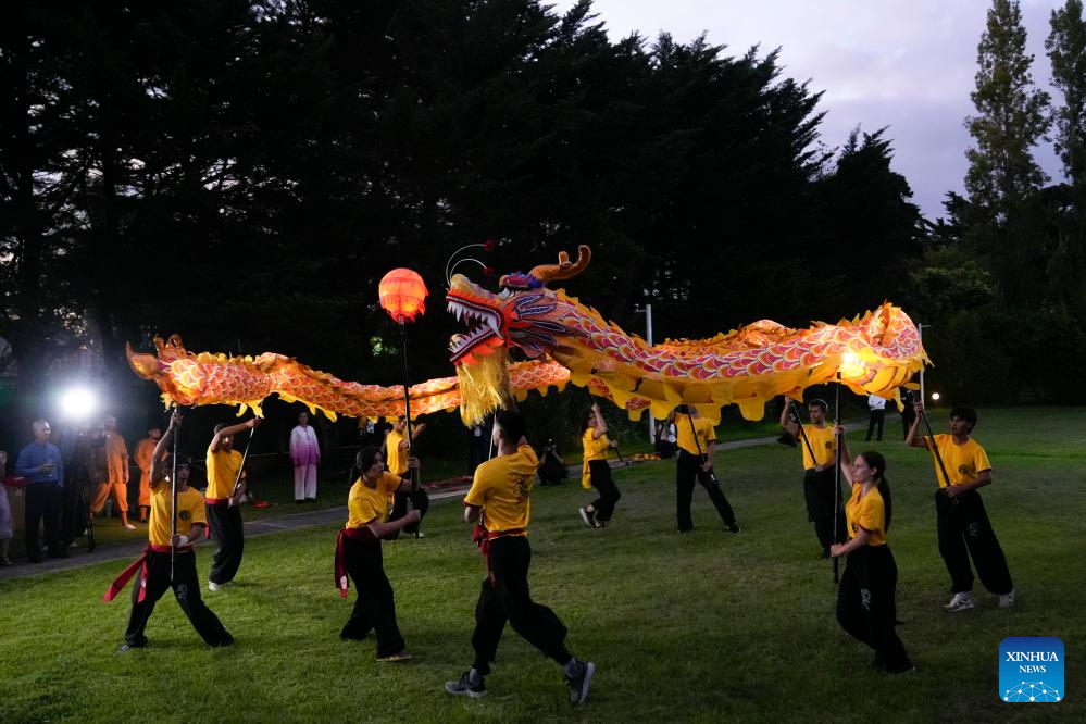 La recepción incluyó espectáculos artísticos tradicionales, entre ellos la danza del león y el dragón, interpretaciones musicales y fuegos artificiales.