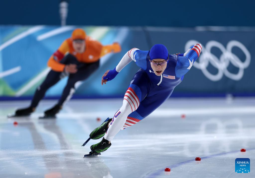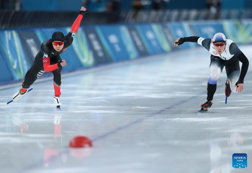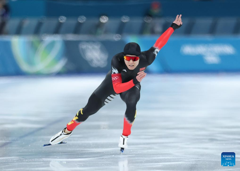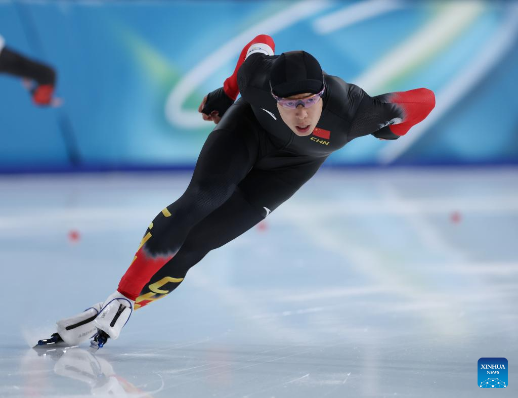 MILAN, 14 febrero, 2026 (Xinhua) -- Xue Zhiwen, de China, compite durante la prueba de 500m masculinos de patinaje de velocidad en los Juegos Olímpicos de Invierno Milán-Cortina 2026, en Milán, Italia, el 14 de febrero de 2026. (Xinhua/Li Jing)
