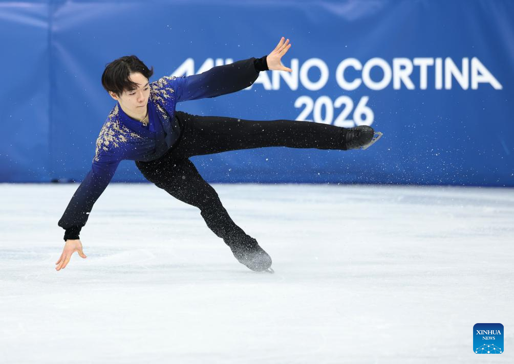 MILAN, 14 febrero, 2026 (Xinhua) -- Imagen del 13 de febrero de 2026 de Kagiyama Yuma, de Japón, realizando una presentación durante el programa libre de patinaje individual masculino de patinaje artístico en los Juegos Olímpicos de Invierno Milán-Cortina 2026, en Milán, Italia. (Xinhua/Li Ming)