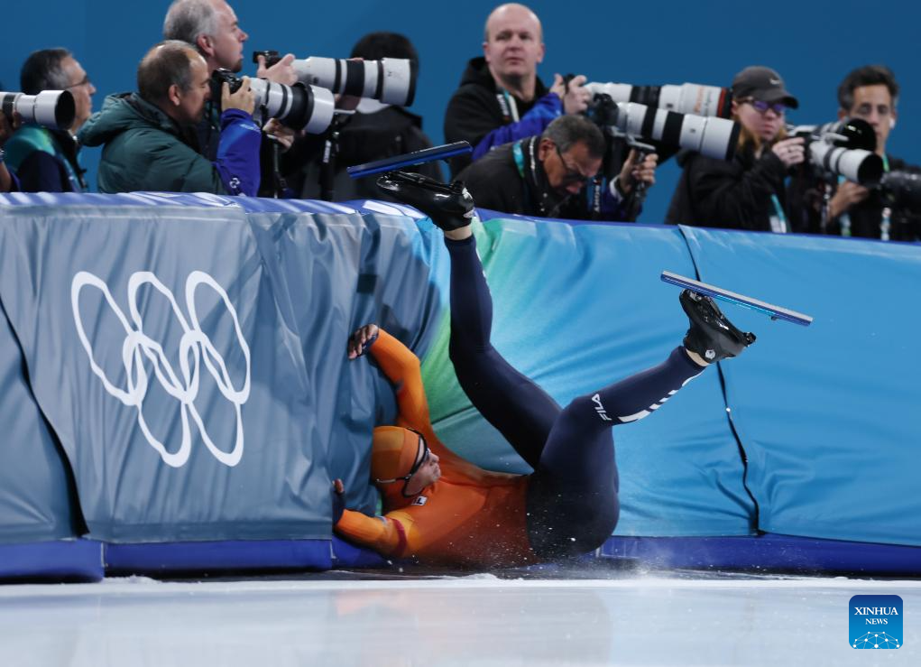 MILAN, 14 febrero, 2026 (Xinhua) -- Jenning de Boo, de Países Bajos, cae al término de la final de 500 m masculinos de patinaje de velocidad en los Juegos Olímpicos de Invierno Milán-Cortina 2026, en Milán, Italia, el 14 de febrero de 2026. (Xinhua/Du Xiaoyi)