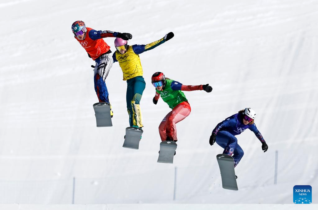 LIVIGNO, 14 febrero, 2026 (Xinhua) -- (De izq. a der.) Imagen del 13 de febrero de 2026 de Eva Adamczykova, de República Checa, Josie Baff, de Australia, Sina Siegenthaler, de Suiza, y Charlotte Bankes, de Reino Unido, compitiendo durante los cuartos de final de cross femenino de snowboard en los Juegos Olímpicos de Invierno Milán-Cortina 2026, en Livigno, Italia. (Xinhua/Wu Huiwo)