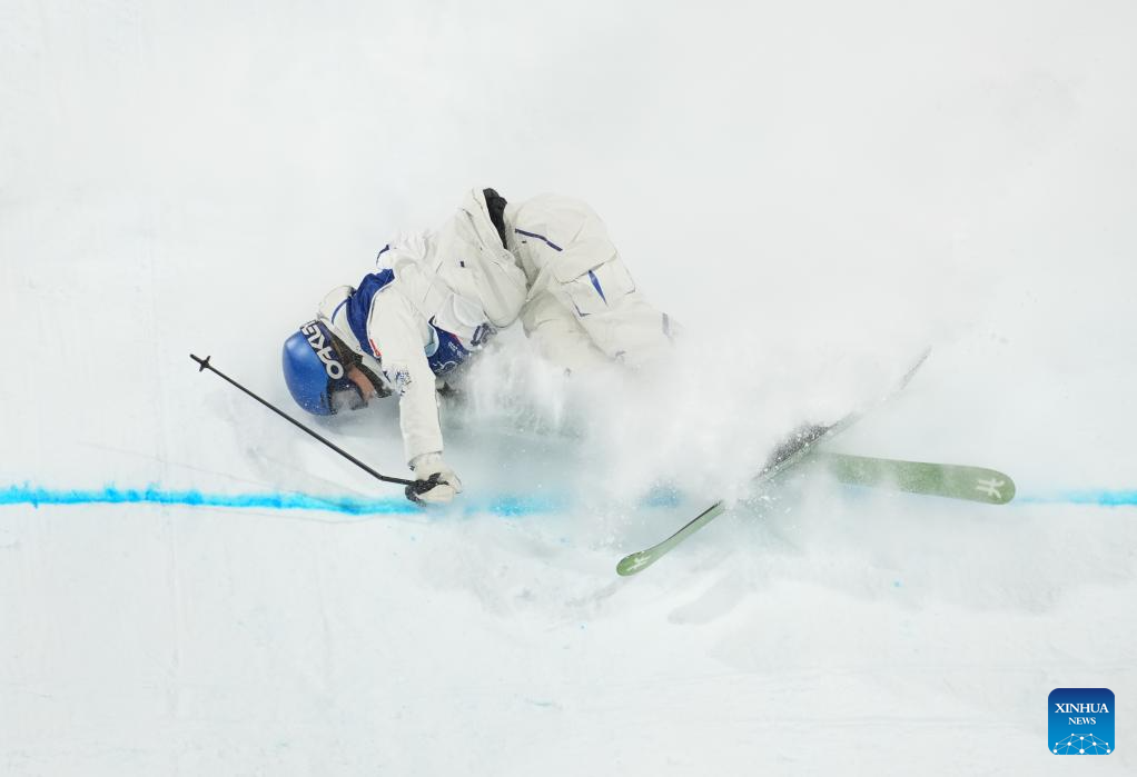 LIVIGNO, 14 febrero, 2026 (Xinhua) -- Gu Ailing, de China, se cae durante la clasificación de Big Air femenino de esquí acrobático en los Juegos Olímpicos de Invierno Milán-Cortina 2026, en Livigno, Italia, el 14 de febrero de 2026. (Xinhua/Hu Chao)