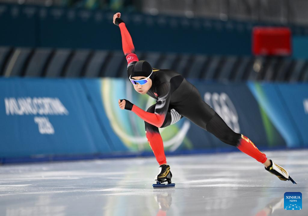 MILAN, 14 febrero, 2026 (Xinhua) -- Gao Tingyu, de China, compite durante la prueba de 500m masculinos de patinaje de velocidad en los Juegos Olímpicos de Invierno Milán-Cortina 2026, en Milán, Italia, el 14 de febrero de 2026. (Xinhua/Wu Wei)