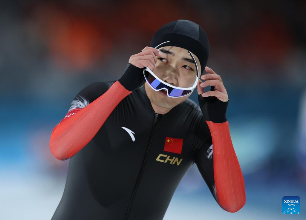 MILAN, 14 febrero, 2026 (Xinhua) -- Gao Tingyu, de China, reacciona al término de la final de 500m masculinos de patinaje de velocidad en los Juegos Olímpicos de Invierno Milán-Cortina 2026, en Milán, Italia, el 14 de febrero de 2026. (Xinhua/Li Jing)