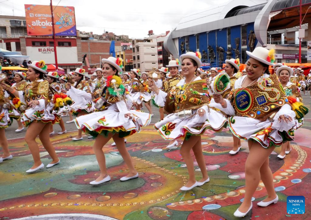ORURO, 14 febrero, 2026 (Xinhua) -- Integrantes de la Fraternidad Folclórica Llamerada Socavón participan en el Carnaval de Oruro, en la ciudad de Oruro, Bolivia, el 14 de febrero de 2026. (Xinhua/Javier Mamani)