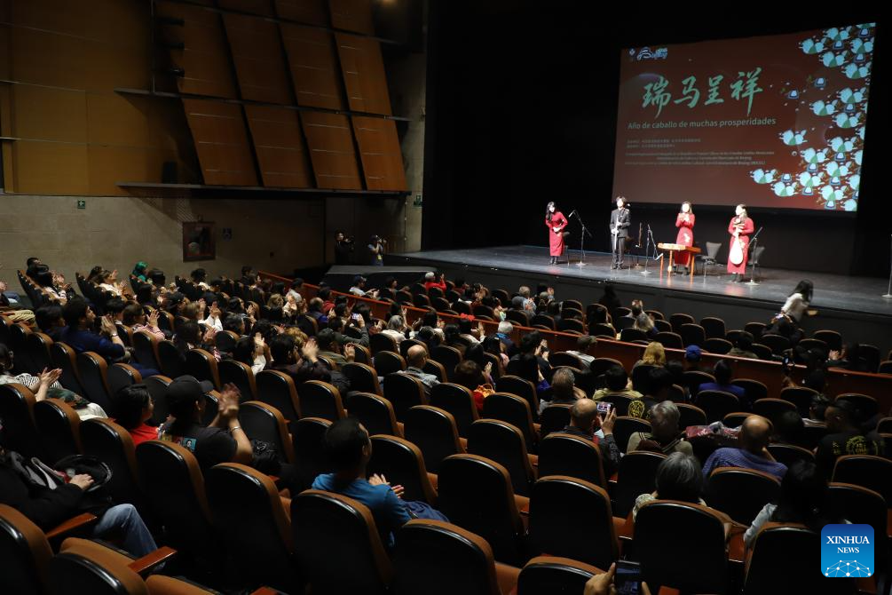 Imagen del 14 de febrero de 2026 de personas disfrutando un espectáculo de música folclórica proveniente de Beijing durante el Festival Cultural del Año Nuevo chino en el Centro Nacional de las Artes (Cenart), en la Ciudad de México, capital de México. El Cenart de la capital mexicana celebró el sábado la quinta edición del Festival Cultural del Año Nuevo chino, que en esta ocasión da la bienvenida al Año del Caballo. (Xinhua/Daniel Augusto)