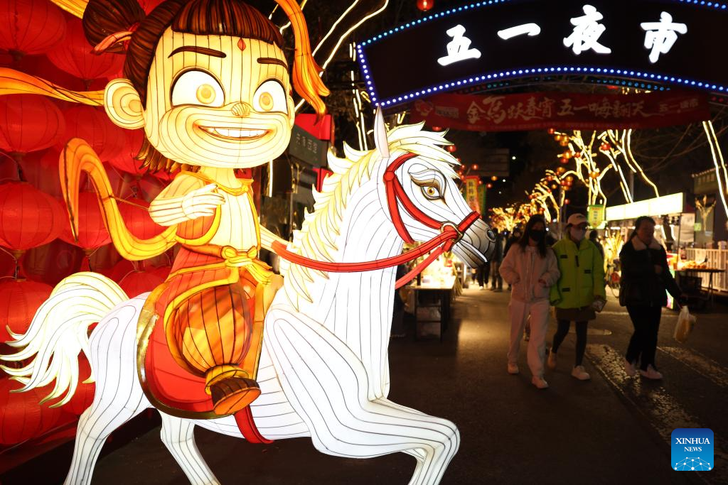 LANZHOU, 15 febrero, 2026 (Xinhua) -- Imagen del 14 de febrero de 2026 de turistas visitando una feria de linternas para celebrar el próximo Año Nuevo chino, en Lanzhou, en la provincia de Gansu, en el noroeste de China. (Xinhua/Chen Bin)
